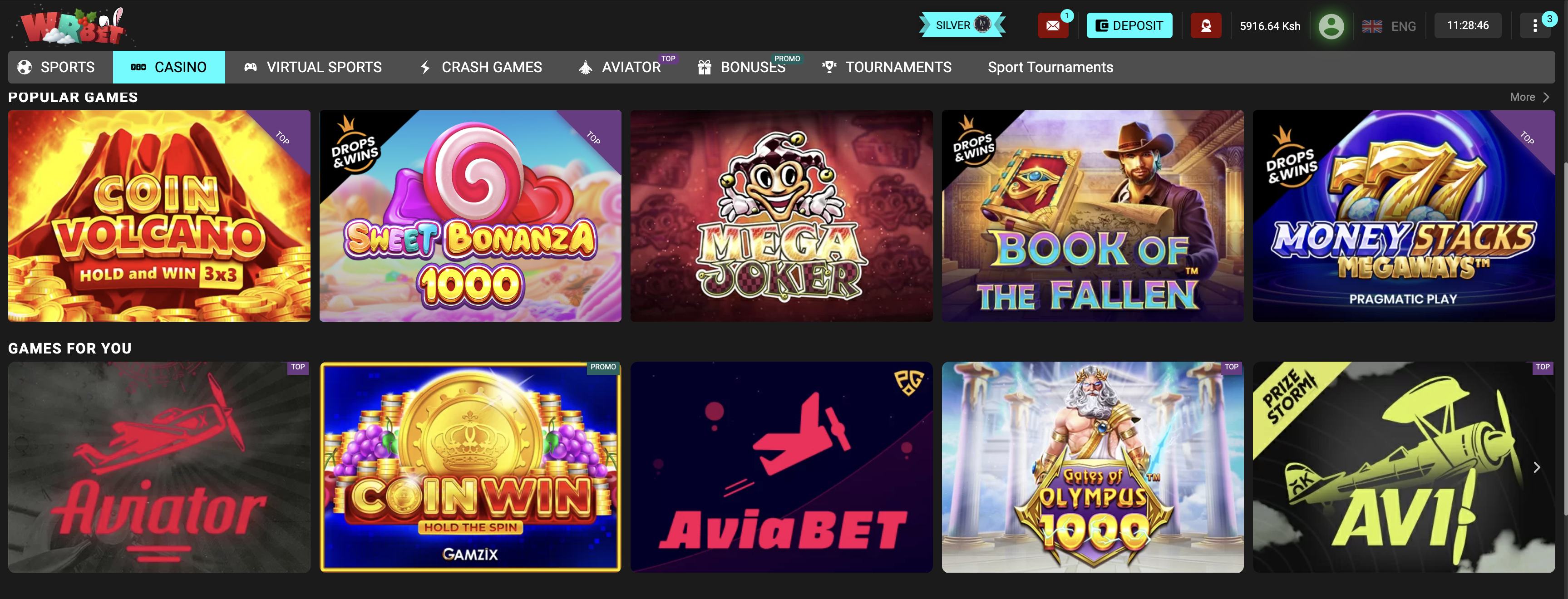 Open the Casino section